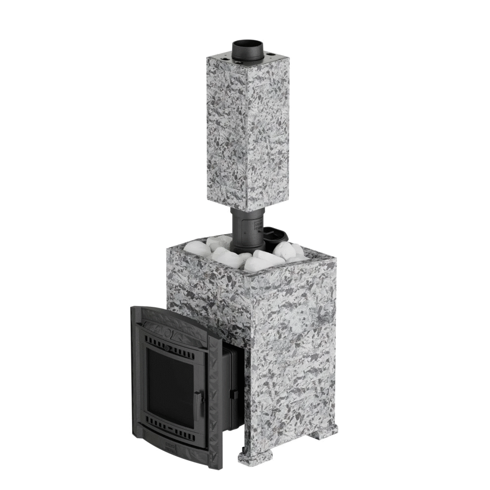 Модель печи в стильной и практичной облицовке из «Пироксенит ЭЛИТ». За счет использования несущих брусков, состоящих из цельного камня, теплоёмкость печи увеличивается на 50%. Конструкция просто собирается и позволяет легко заменить любую деталь в случае необходимости. Цена и КПД такой облицовки отличаются оптимальным соотношением