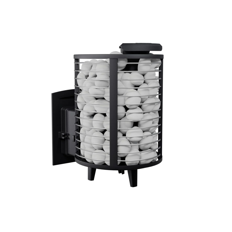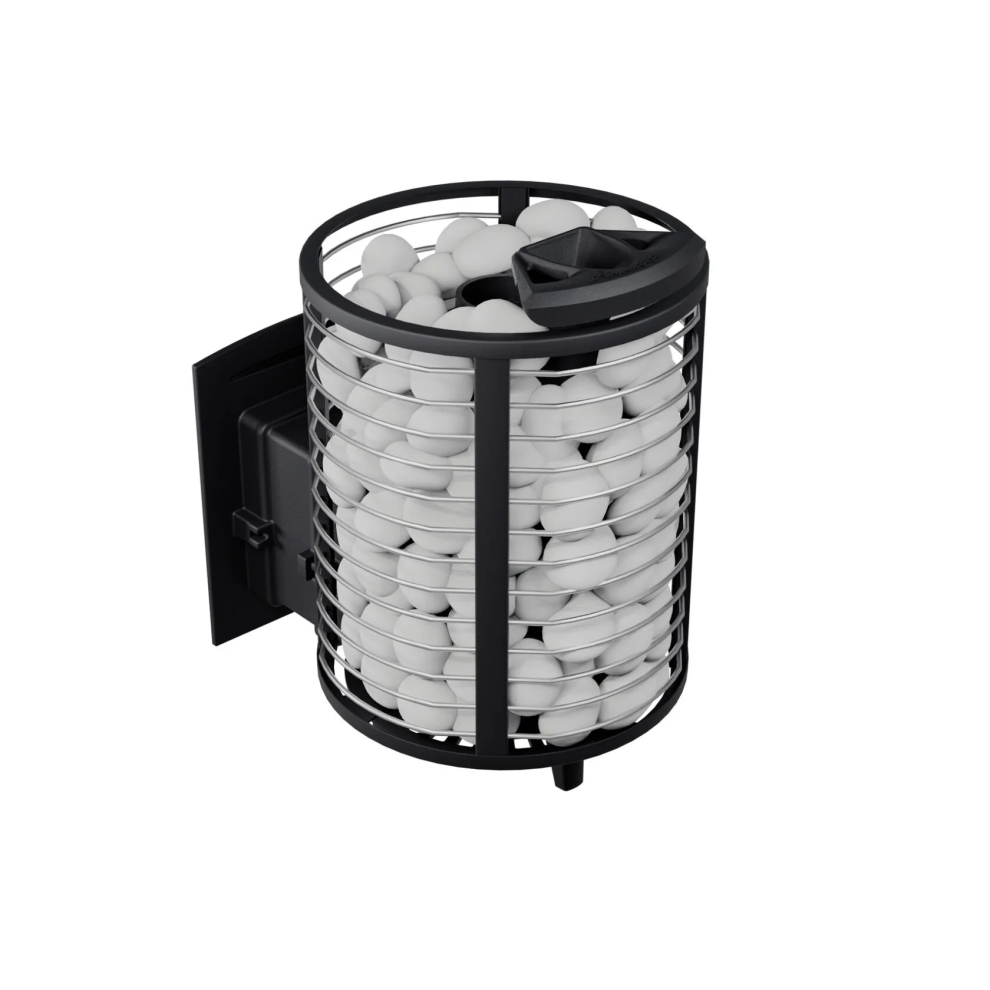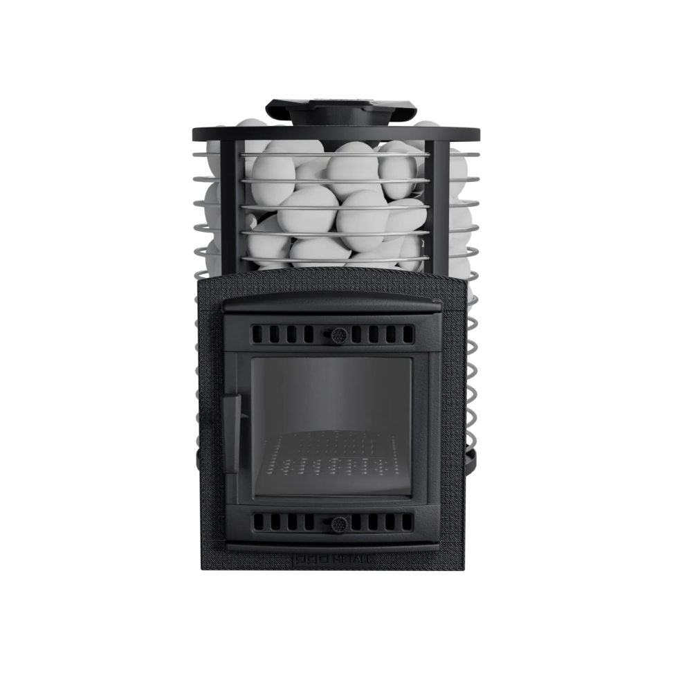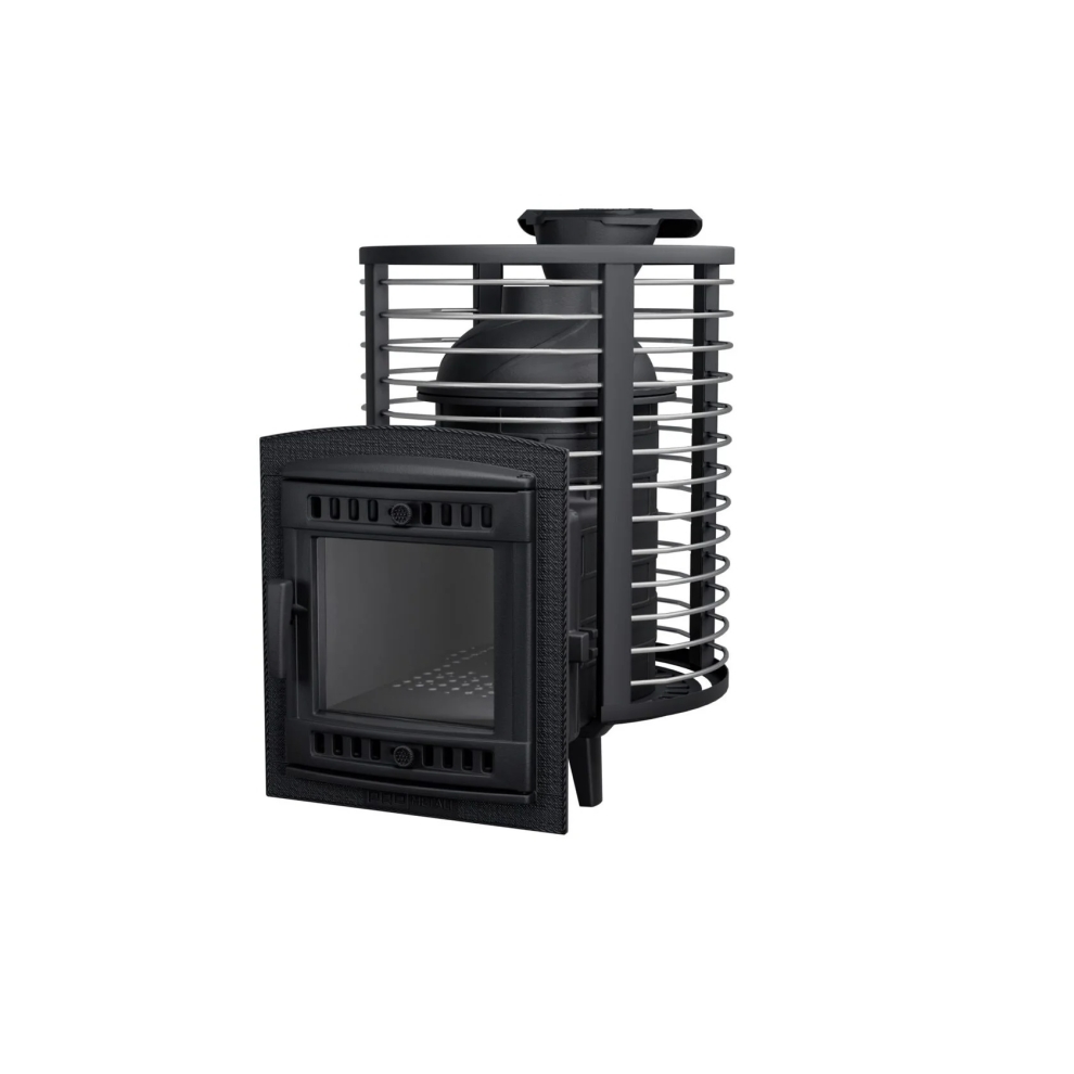 Кожух печи изготовлен в виде сетки из нержавеющей стали и полностью заполняется природными камнями, обеспечивая высокую динамику нагрева парильного помещения. Маленькая, но не менее надёжная банная печь для небольших парных помещений, объёмом до 14 м³. Отлично подойдёт для небольших частных парных и будет служить долгие годы своему хозяину.
