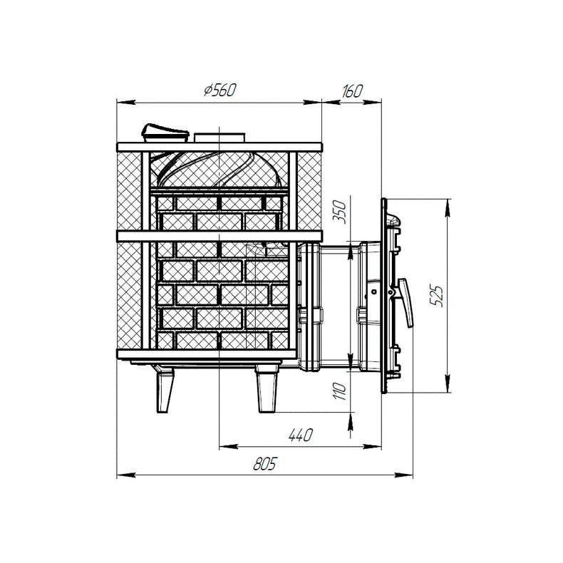 Объем закрытой каменки - 13 литров