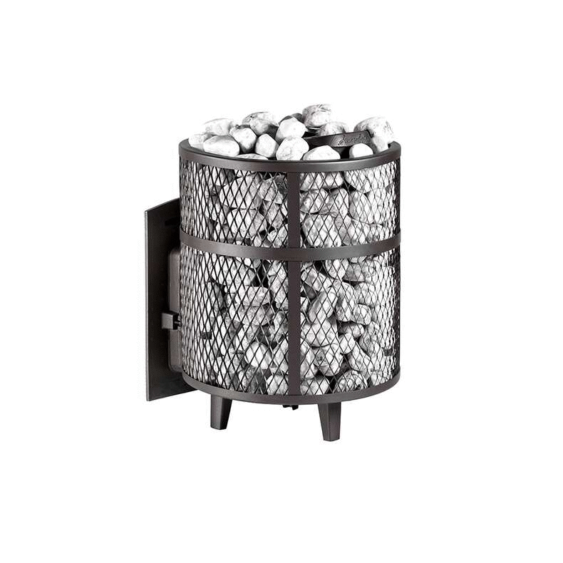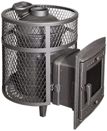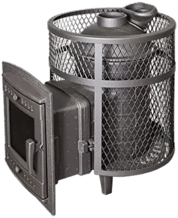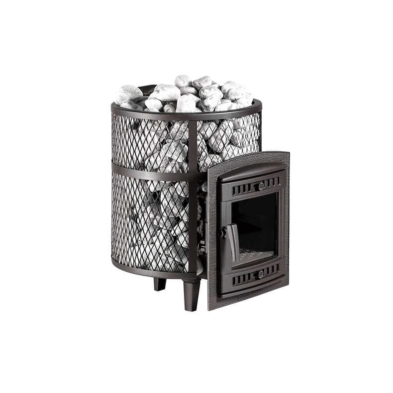 Кожух печи изготовлен в виде сетки из нержавеющей стали и полностью заполняется природными камнями, обеспечивая высокую динамику нагрева парильного помещения. Маленькая, но не менее надёжная банная печь для небольших парных помещений, объёмом до 14 м³. Отлично подойдёт для небольших частных парных и будет служить долгие годы своему хозяину.