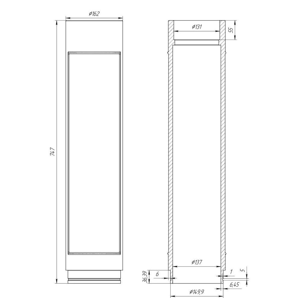 Размер(ДхШхВ) - 130х130х740мм
