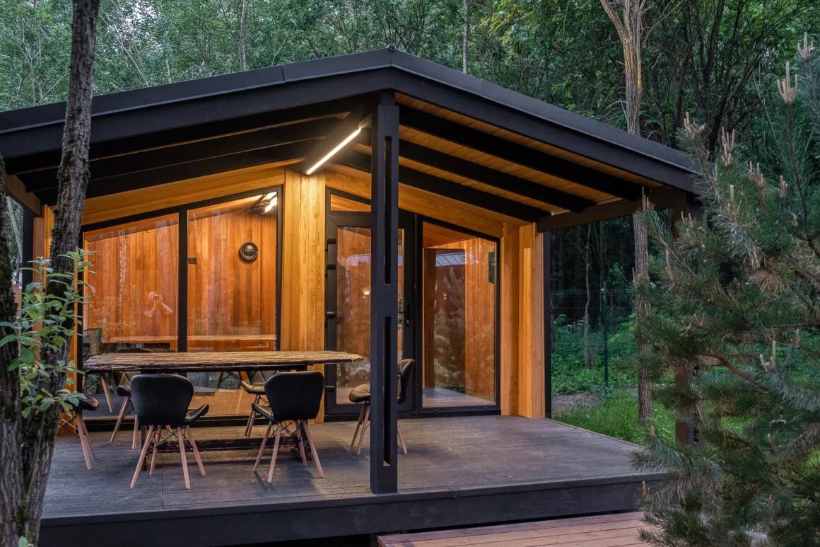 Как выглядит дом мечты внутри? Модульная баня с остекленной террасой!