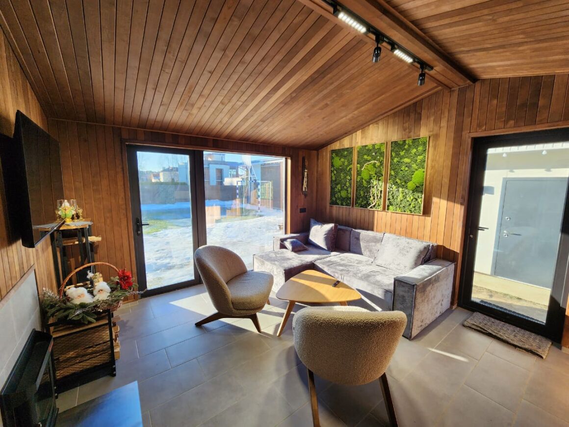 Модульная баня с ЗИМНИМ САДОМ! Электрическая печь Sangens