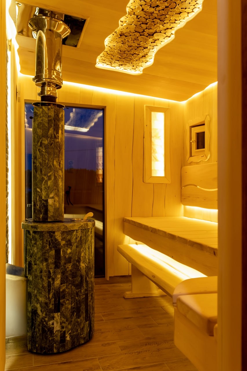 В ЭТОЙ бане много света! Чан с подогревом и печь Ферингер в камне змеевик