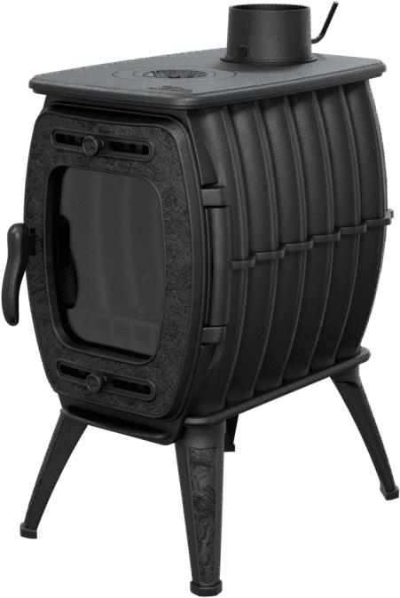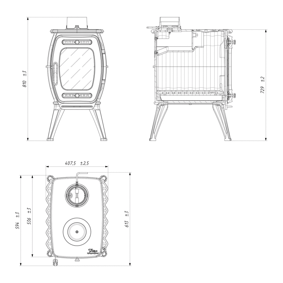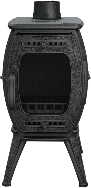 Печь изготовлена из жаропрочного чугуна ЧХ-1, оснащена варочной поверхностью с регулируемой конфоркой и панорамным экраном из жаростойкого стекла.