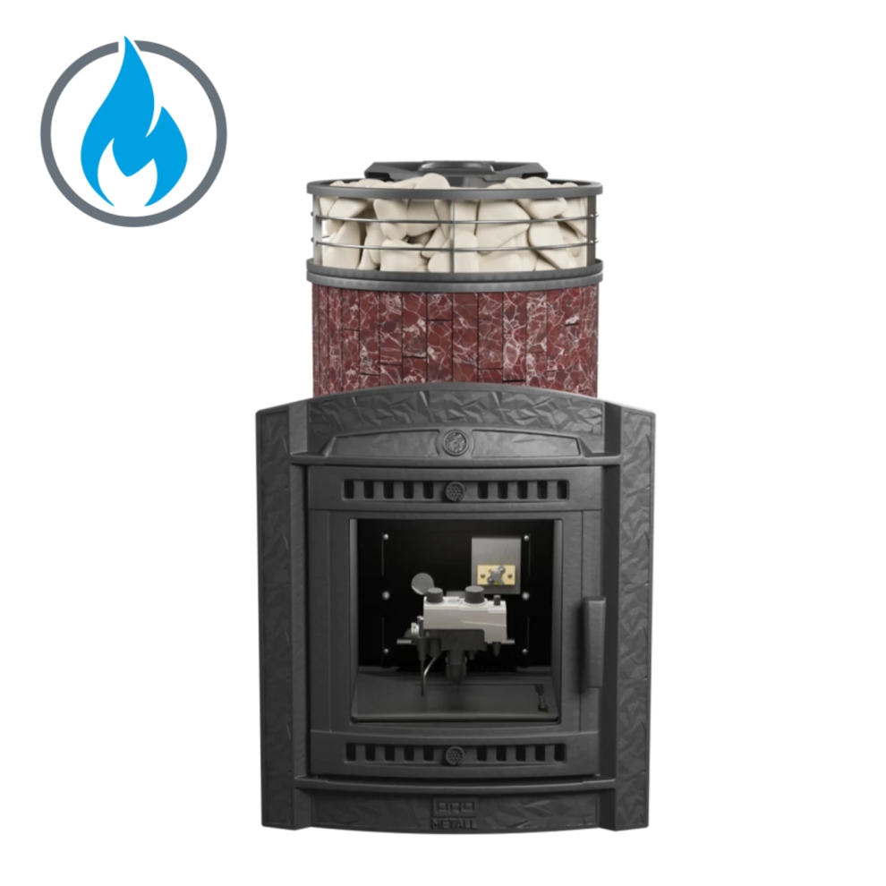 Печь банная «Атмосфера L» россо леванто ламель + сетка с газовой горелкой