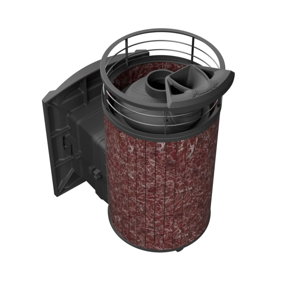 Компактная и экономичная модель. Кожух печи изготовлен в виде сетки из стали и полностью заполняется природными камнями, обеспечивая высокую динамику нагрева парильного помещения.