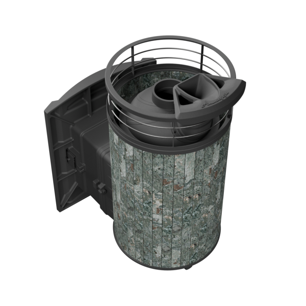 Компактная и экономичная модель. Кожух печи изготовлен в виде сетки из стали и полностью заполняется природными камнями, обеспечивая высокую динамику нагрева парильного помещения.