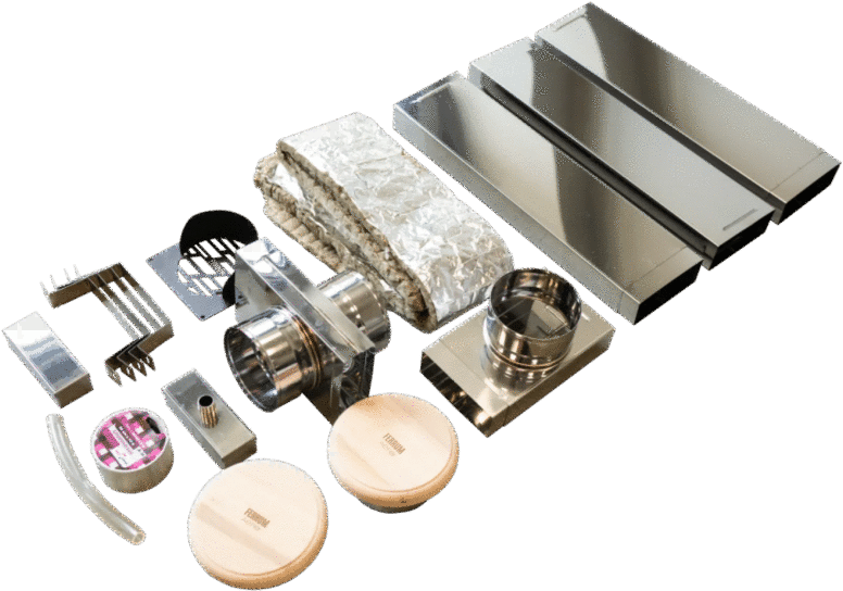 Комплект предназначен для сборки системы вентиляции в бане или сауне. Системы вентиляции предназначены для эффективного двухуровнего осуществления и регулировки воздухообмена в парильном помещении, а так же обеспечения сбалансированного микроклимата.